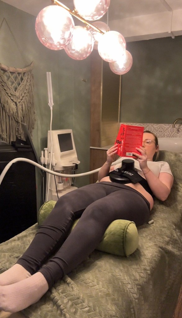 I embarked on a course of five treatments, with two sessions a week spaced two days apart, starting four weeks after my fat freezing treatment to boost my end results.